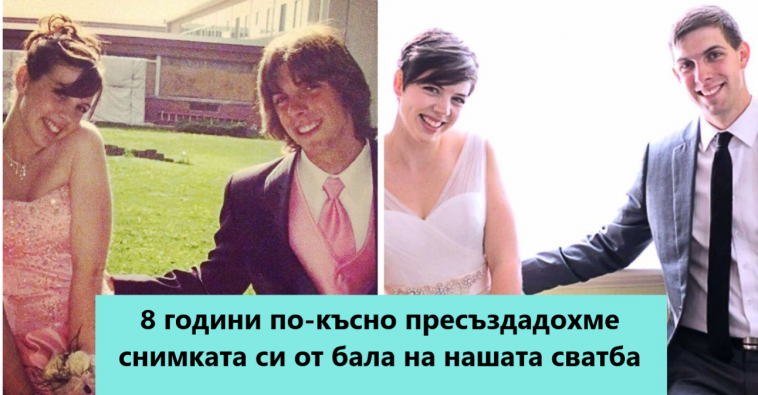 1. „8 години по-късно пресъздадохме абитуриентската си снимка на нашата сватба.“