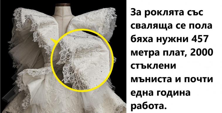 „За роклята със сваляща се пола бяха нужни 457 метра плат, 2000 стъклени мъниста и почти една година работа.“