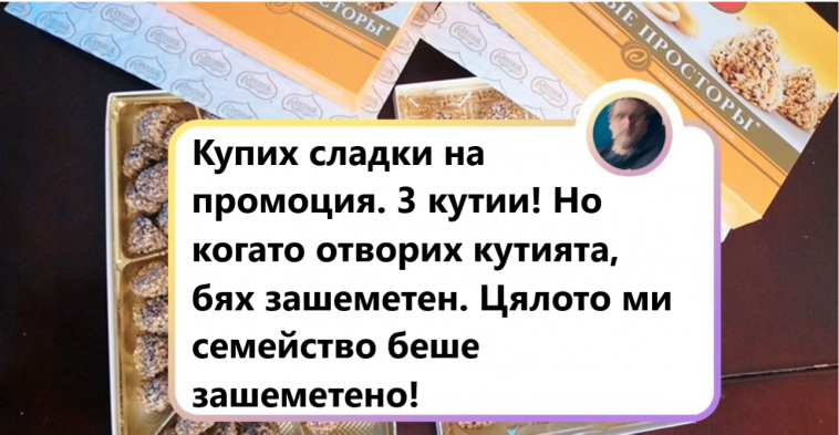 „Купих сладки на промоция. 3 кутии! Знам, че цената им беше двойно по-висока, тъй като наскоро бях взел. Бях доволен от успешната покупка. Но когато отворих кутията, бях зашеметен. Не, цялото ми семейство беше зашеметено!“