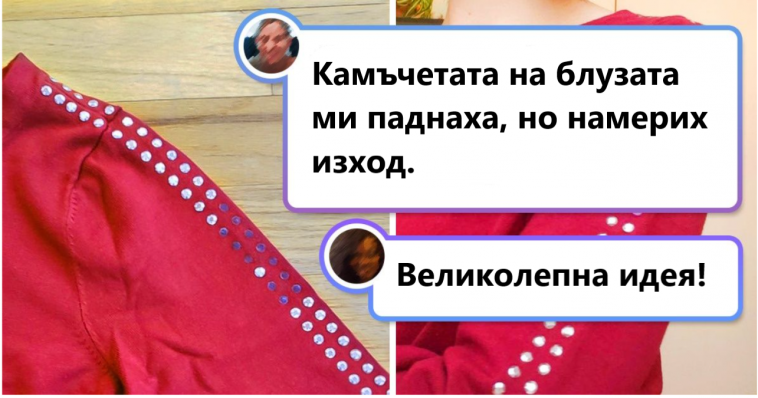 „Камъчетата на блузата ми паднаха, но намерих изход. Замених ги с многоцветни пайети“