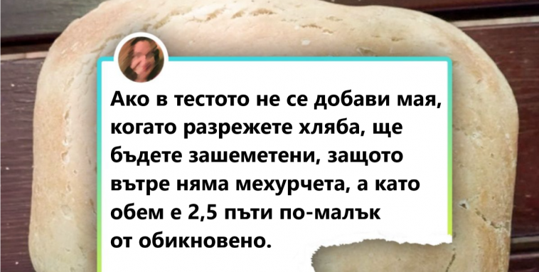 Ако в тестото не се добави мая, когато разрежете хляба, просто ще бъдете зашеметени, защото вътре няма мехурчета, а като обем е 2,5 пъти по-малък от обикновено.