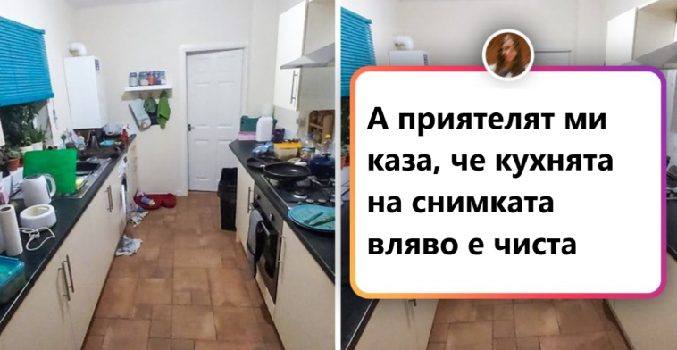 „А приятелят ми каза, че кухнята на снимката вляво е чиста.“