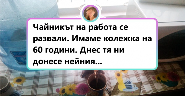 „Чайникът на работа се развали. Имаме колежка на 60 години. Днес тя ни донесе нейния… “