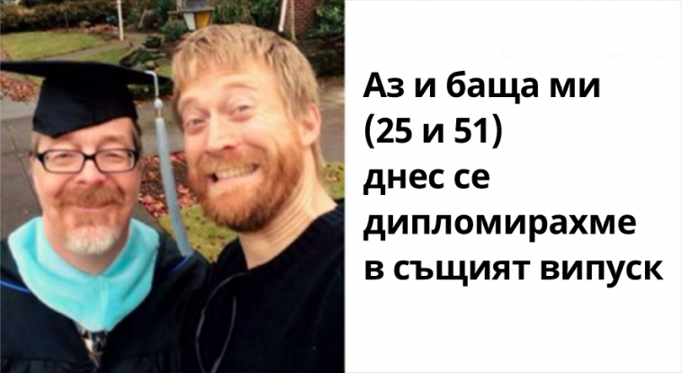 1. Аз и баща ми (25 и 51) току-що завършихме колеж в същият випуск!