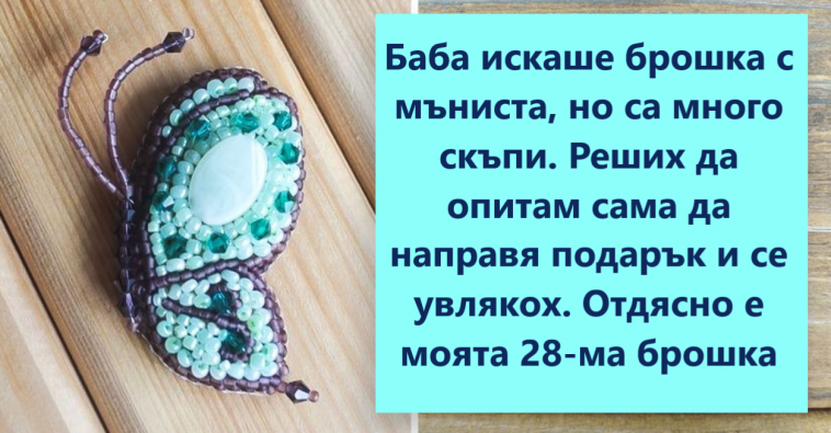 „Баба искаше брошка с мъниста, но са много скъпи. Реших да опитам сама да направя подарък и се увлякох. Отдясно е моята 28-ма брошка“