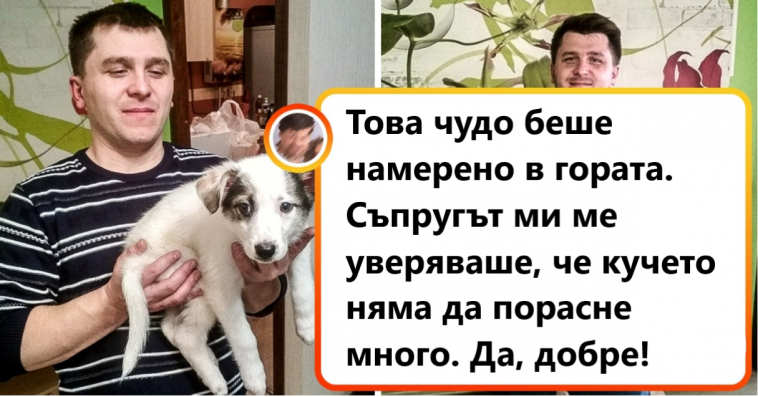 „Преди 2 години това чудо беше намерено в гората в снежна преса и прието в нашето семейство. Съпругът ми ме уверяваше, че кучето няма да порасне много. Да, добре!“